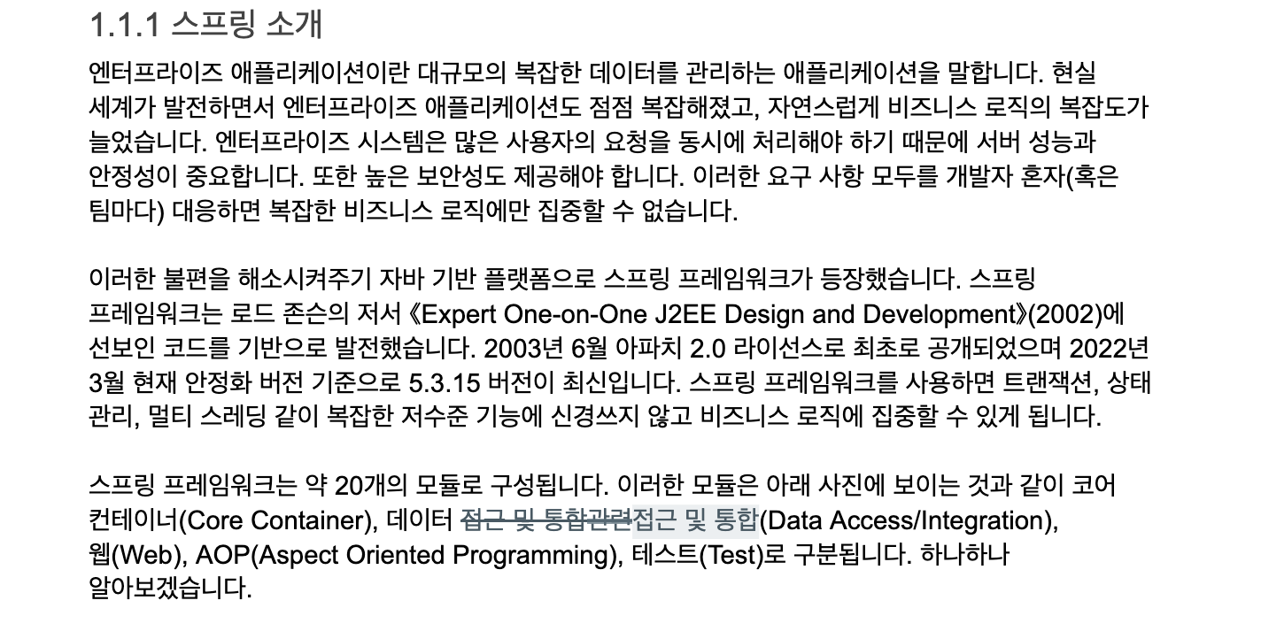 앞으로 스프링 부트를 사용하면서 라이브러리와 프레임워크라는 용어를 자주 사용할 텐데 지금 여러분은 이정도만 이해하고 넘어가도 충분할 것이라 생각합니다. ~~~- 이 용어를 가르쳐주시는 이유를 정리해 주시고(왜 배우는 지), 이후 내용은 스프링 부트 개발과 크게 관련이 없다면 제외해도 될 것 같아요(독자는 봐도 잘 모를 것 같습니다).